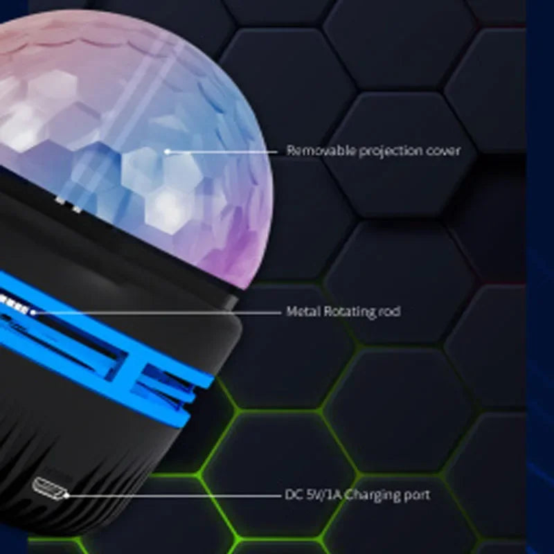This LED star and galaxy projector creates a calming starry-sky atmosphere for bedrooms, relaxation spaces and festive decorations. Designed with an automatically rotating crystal-style projection dome, it casts colorful light patterns across walls and ceilings, making it suitable for nighttime ambiance, children's rooms, holiday displays and cozy mood lighting. Powered by USB and compact in size, it offers an easy decorative lighting option for everyday use.